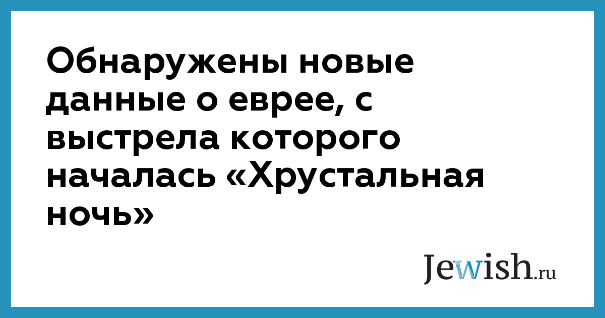JTA. Гриншпан вошел в историю тем, что 7 ноября 1938 года в возрасте 17 лет застрелил в Париже немецкого дипломата Эрнста фон Рата из мести за родителей, высланных из Германии в Польшу. Это покушение было использовано как формальный предлог для «Хрустальной ночи» — прокатившейся по всей Германии 9 ноября волны погромов, в ходе которых было сожжено около 200 синагог, разрушены тысячи еврейских магазинов и домов, арестованы 30 тыс. евреев, 91 человек — убит.
