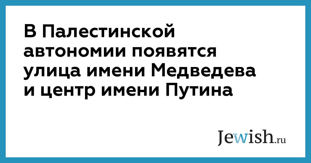 В Палестинской автономии появятся улица имени Медведева и центр имени Путина