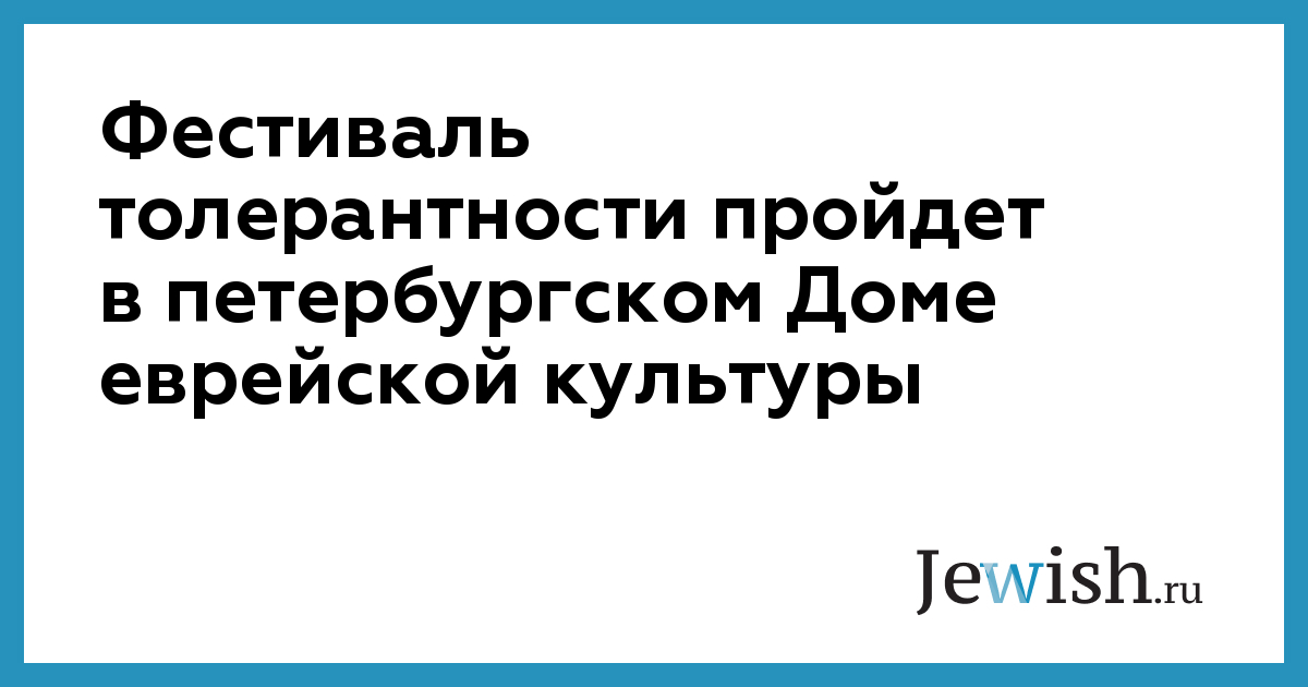 Фестиваль толерантности пройдет в петербургском Доме еврейской культуры