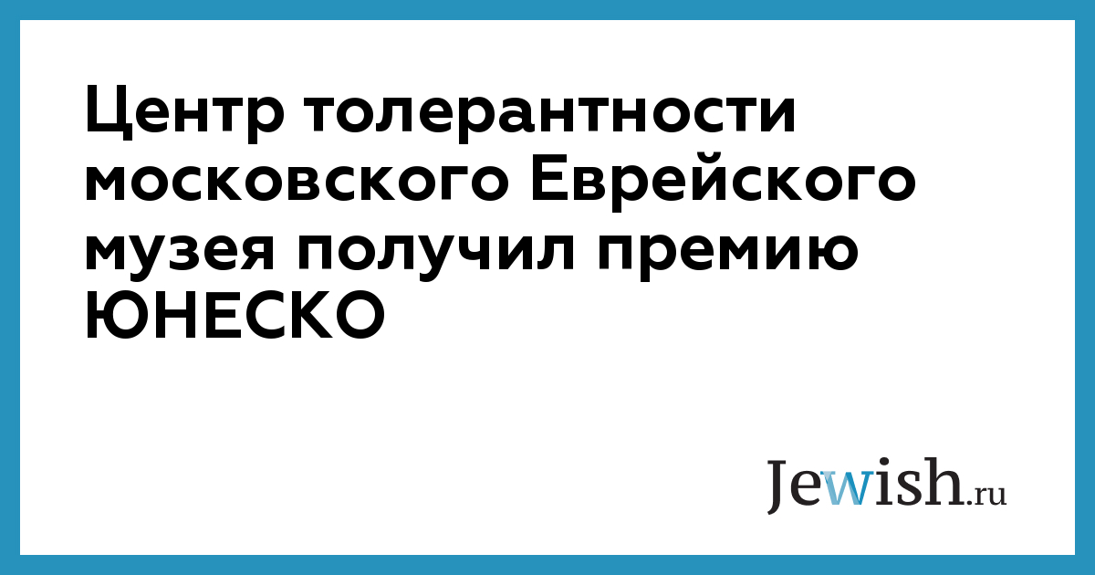 Центр толерантности московского Еврейского музея получил премию ЮНЕСКО