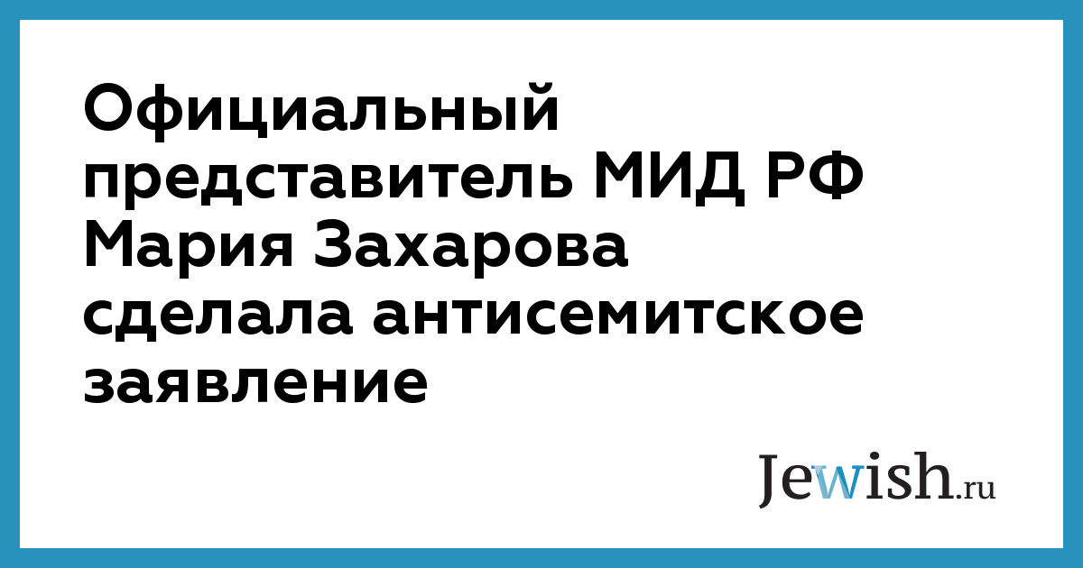 Официальный представитель МИД РФ Мария Захарова сделала антисемитское заявление