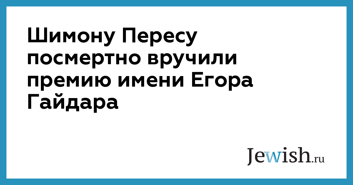 Шимону Пересу посмертно вручили премию имени Егора Гайдара