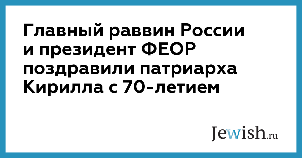 Главный раввин России Берл Лазар и президент Федерации еврейских общин России Александр Борода направили патриарху Кириллу поздравление с 70-летием, которое он отметил в воскресенье, 20 ноября. В поздравлениях лидеров еврейской общины подчеркивается, что все верующие России, вне зависимости от конфессиональной принадлежности, высоко оценивают роль патриарха в возрождении духовности в стране.