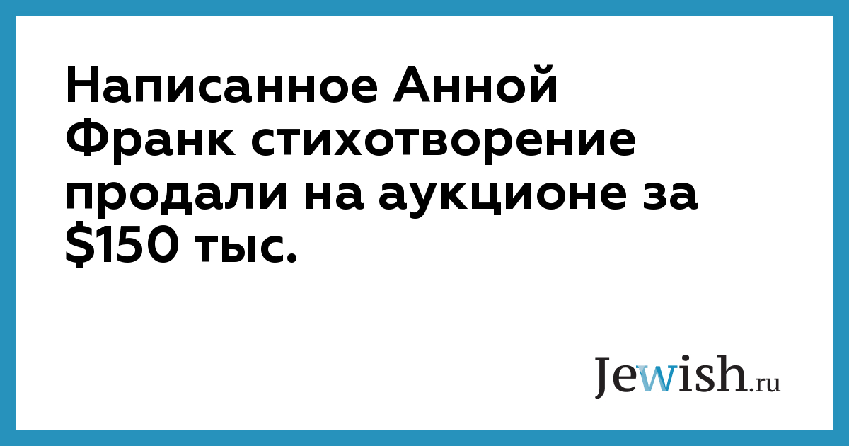 Написанное Анной Франк стихотворение продали на аукционе за $150 тыс.