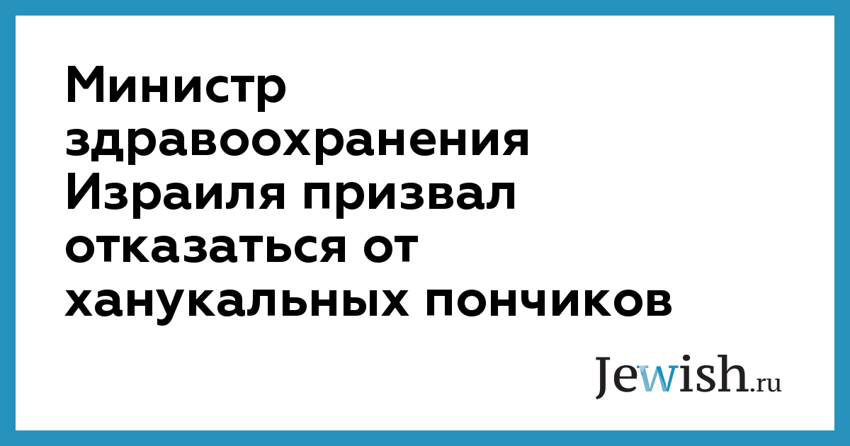 Министр здравоохранения Израиля Яков Лицман, представитель ортодоксальной партии «Яадут а-Тора», объявил войну одному из символов праздника Ханука — традиционным пончикам (суфганийот), сообщает
