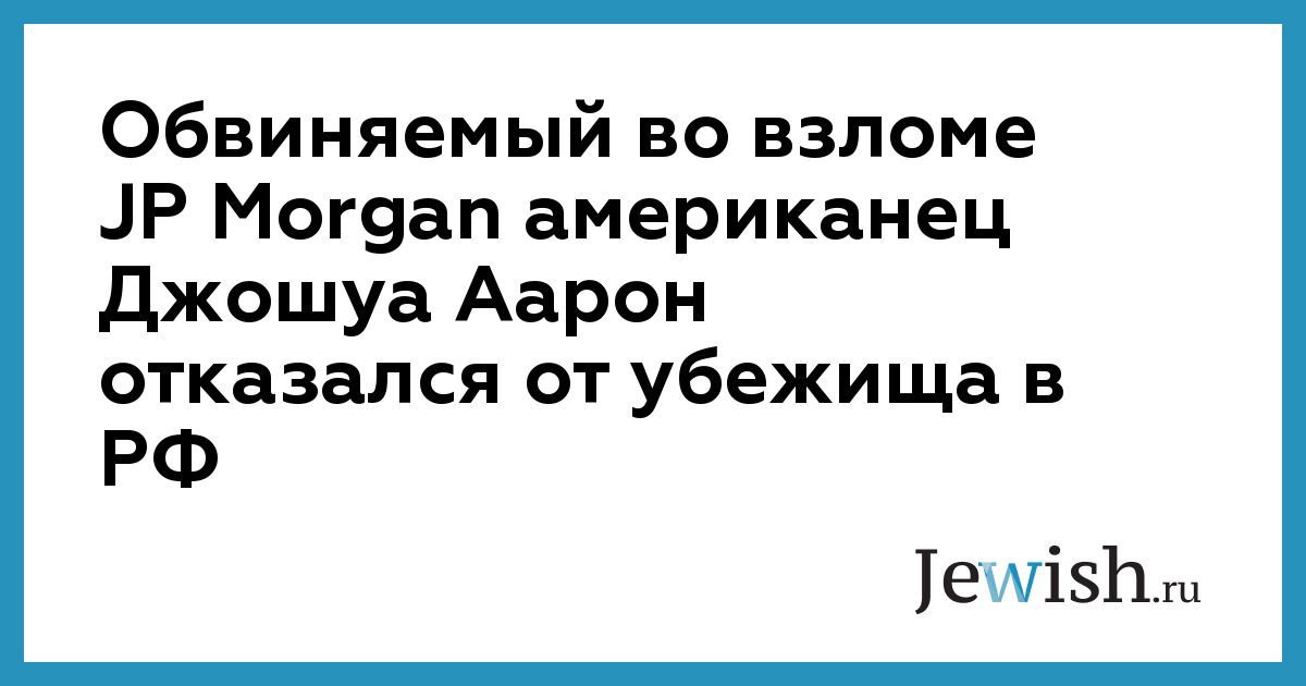 Обвиняемый во взломе JP Morgan американец Джошуа Аарон отказался от убежища в РФ