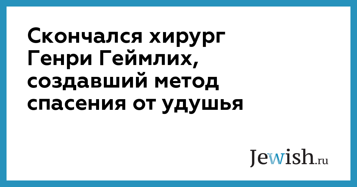 Скончался хирург Генри Геймлих, создавший метод спасения от удушья