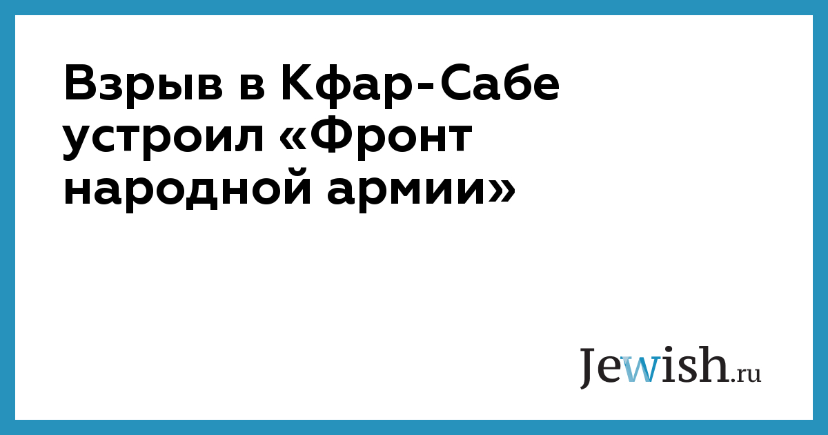 Взрыв в Кфар-Сабе устроил «Фронт народной армии»