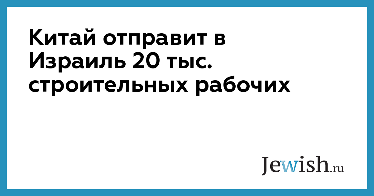 Китай отправит в Израиль 20 тыс. строительных рабочих