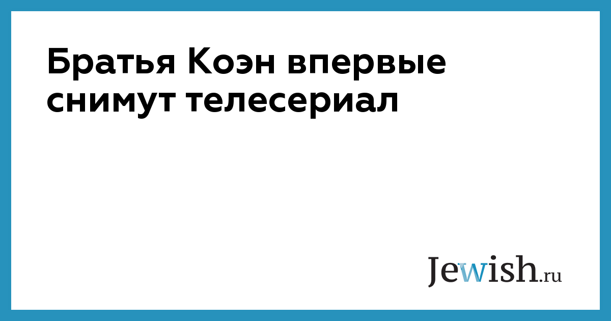 Братья Коэн впервые снимут телесериал