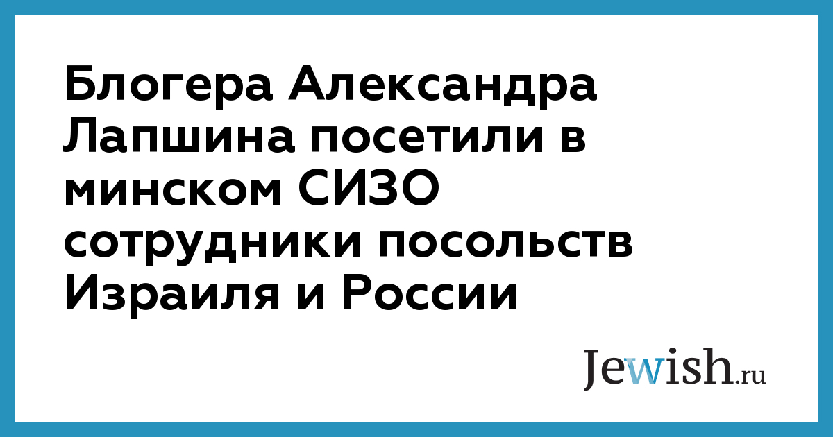 Российско-израильского блогера Александра Лапшина, который уже месяц содержится в следственном изоляторе № 1 Минска, посетили сотрудники посольств Израиля и России, сообщает