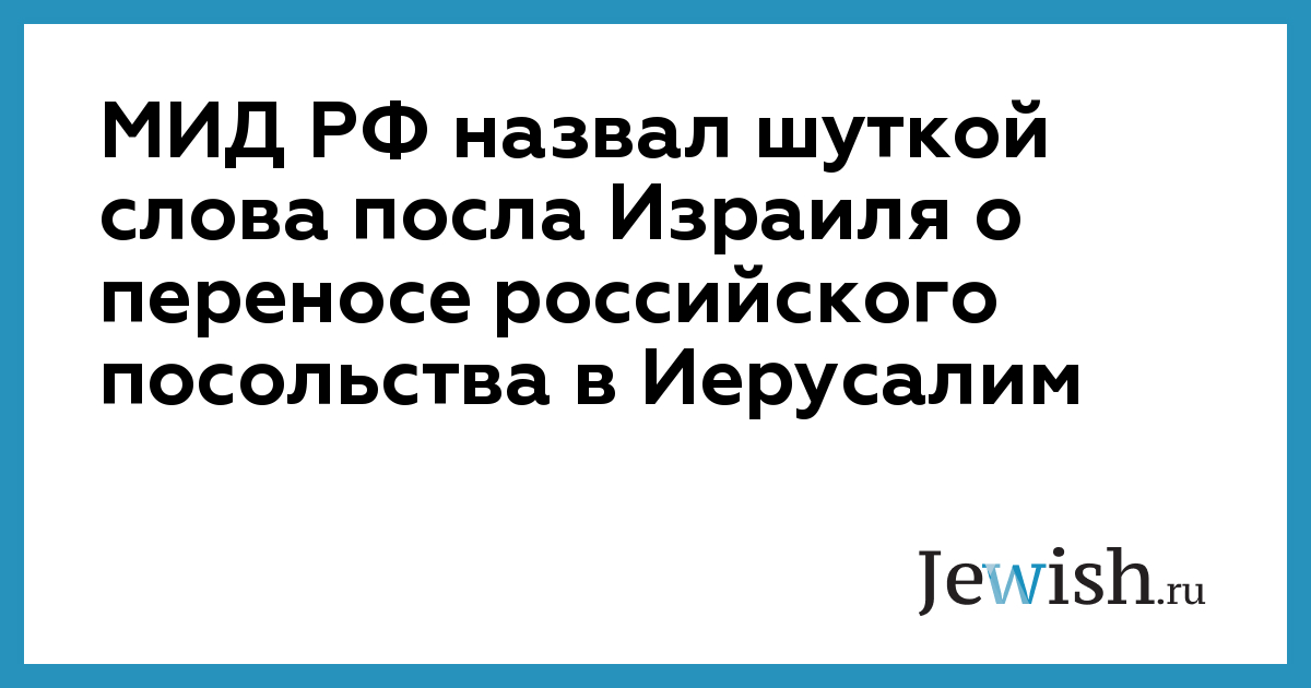 Замминистра иностранных дел России Михаил Богданов предположил, что посол Израиля в Москве шутил, говоря о предпосылках к переносу российского посольства в Израиле из Тель-Авива в Иерусалим, пишет