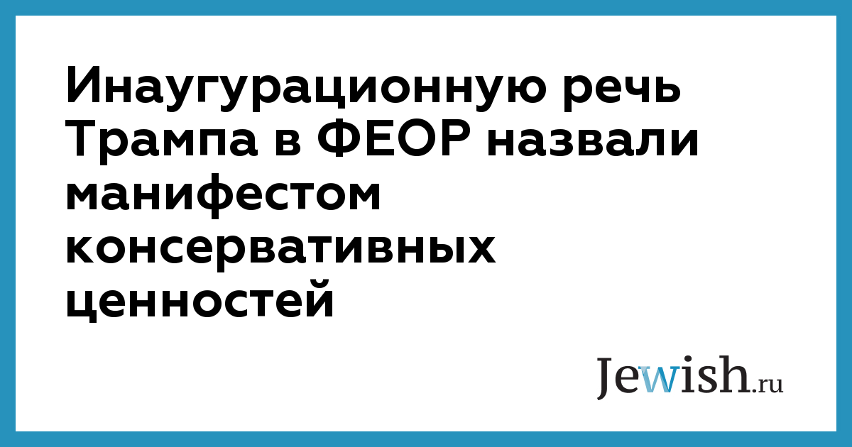 В Федерации еврейских общин России усмотрели в инаугурационной речи президента США Дональда Трампа возвращение к консервативным ценностям и отказ от постулатов либерализма, сообщает
