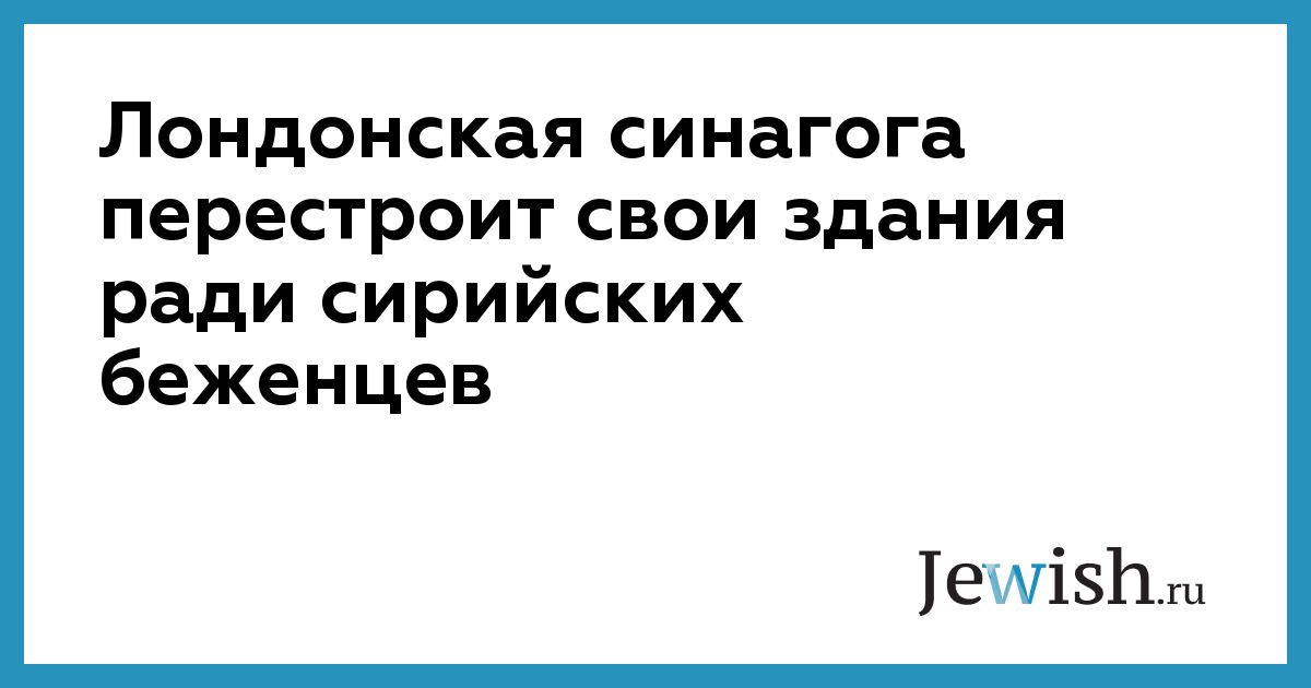 Лондонская синагога перестроит свои здания ради сирийских беженцев