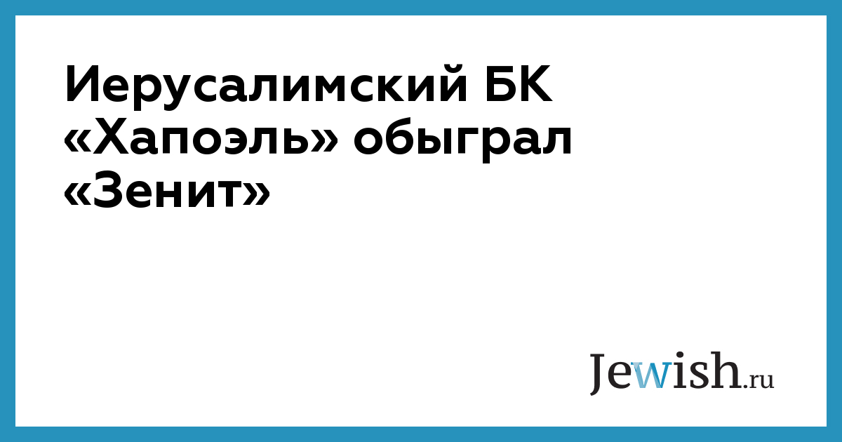 Иерусалимский БК «Хапоэль» обыграл «Зенит»