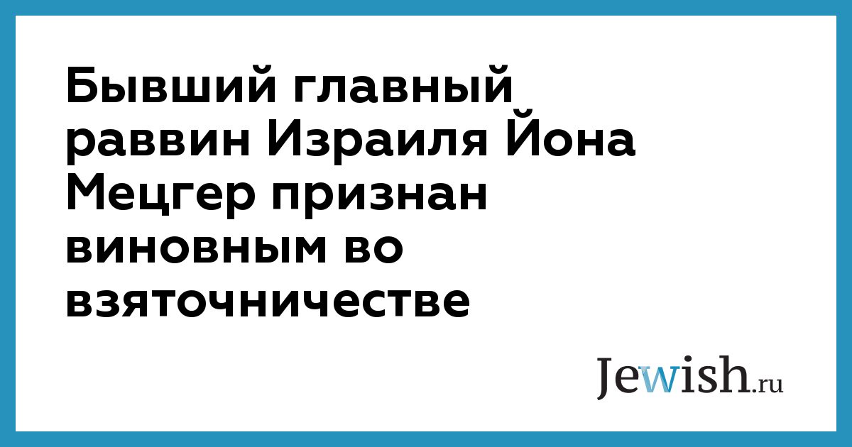 В понедельник, 30 января, окружной суд в Иерусалиме признал бывшего главного ашкеназского раввина Израиля Йону Мецгера виновным во взяточничестве, мошенничестве и уклонении от уплаты налогов, сообщает
