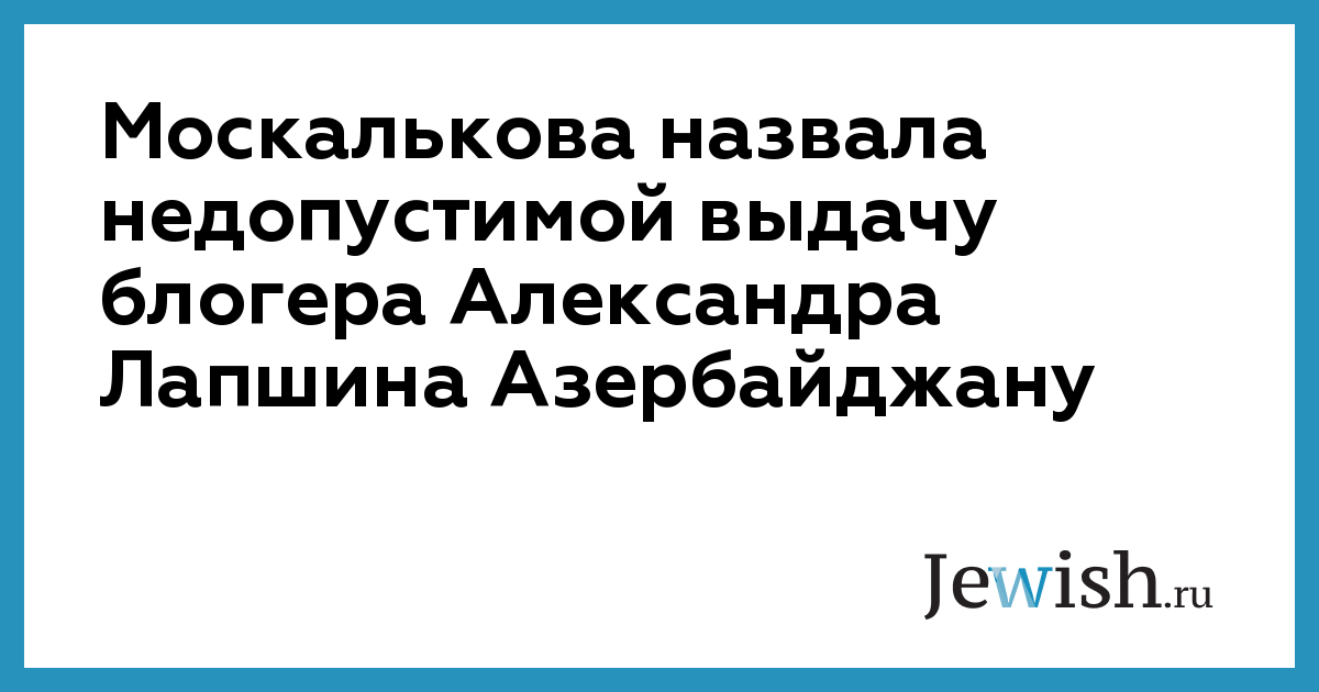Уполномоченный по правам человека в России Татьяна Москалькова назвала недопустимой выдачу блогера Александра Лапшина Азербайджану. «Считаю недопустимой выдачу с территории Союзного государства России и Белоруссии в Азербайджанскую Республику гражданина России, независимого журналиста Александра Лапшина», —
