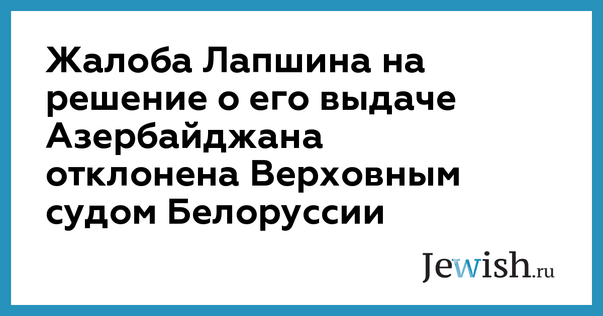 Как отмечает агентство, дело было рассмотрено на закрытом судебном заседании. Суд отклонил ходатайство Лапшина о неправомерности решения Минского городского суда о выдаче блогера Азербайджану. Так как Верховный суд Белоруссии является последней инстанцией, в которой он мог опротестовать постановление Генпрокуратуры, решение о выдаче вступило в силу, подчеркивает издание