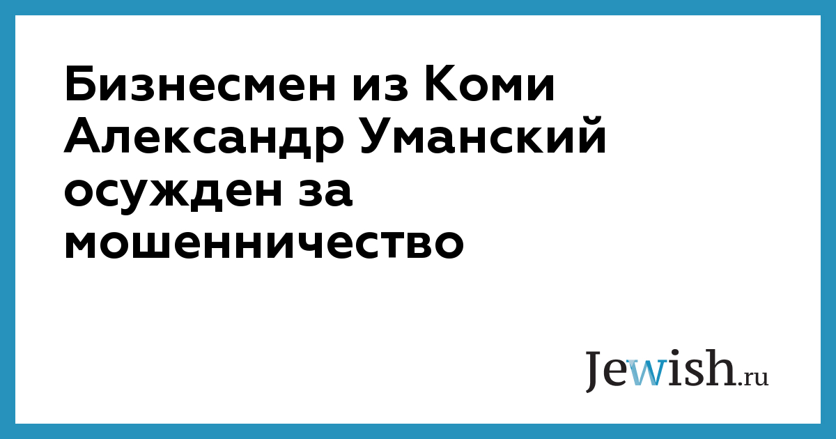 Сыктывкарский городской суд приговорил на минувшей неделе к двум годам лишения свободы в исправительной колонии общего режима бывшего директора ООО «Здравницы Республики» Александра Уманского. Он признан виновным в мошенничестве, совершенном с использованием служебного положения в особо крупном размере.