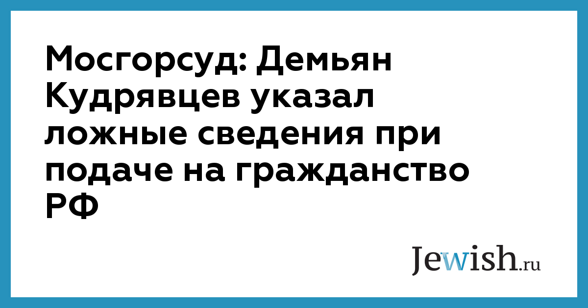 «В августе 2016 года Федеральная миграционная служба обратилась в Мосгорсуд с заявлением об установлении факта сообщения Кудрявцевым заведомо ложных сведений при подаче заявления о приеме в гражданство Российской Федерации. Суд установил данный факт», — рассказала Солопова. Пресс-секретарь подчеркнула, что в Мосгорсуде не решался вопрос о лишении Кудрявцева гражданства, хотя некоторые СМИ опубликовали такую информацию. «Это вопрос других органов», — сказала представитель суда.