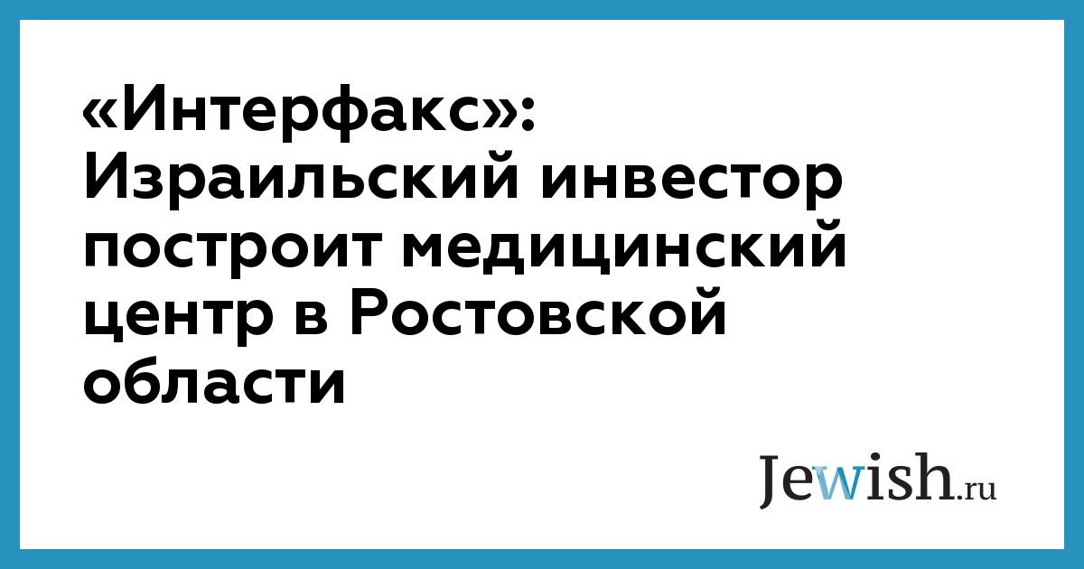 «Интерфакс»: Израильский инвестор построит медицинский центр в Ростовской области