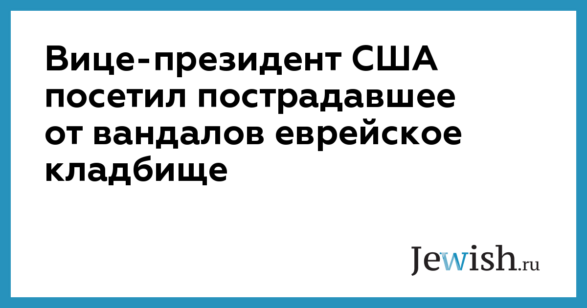 Вице-президент США Майкл Пенс в среду, 22 февраля, посетил еврейское кладбище в штате Миссури, в конце прошлой недели пострадавшее от рук вандалов. В ходе визита Пенс осудил любые проявления антисемитизма и поблагодарил жителей Миссури за «сострадание и поддержку», которую они оказали еврейской общине. Вице-президент напомнил, что помощь в восстановлении кладбища оказывают в том числе и последователи других религий и назвав это «вдохновляющим примером» для всей страны.