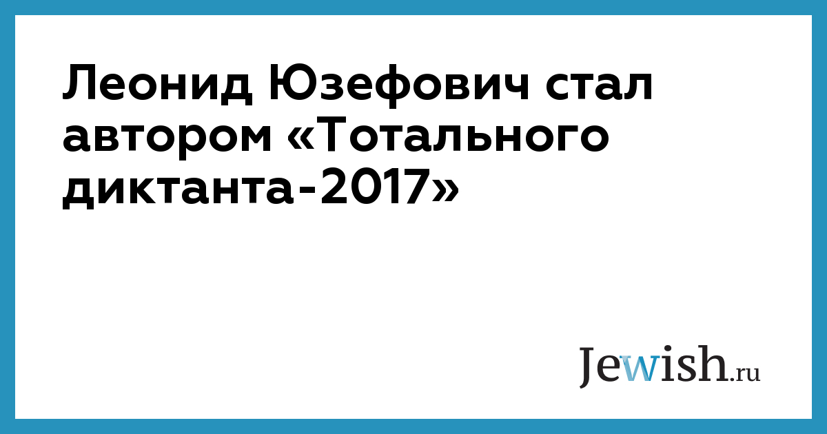 Писатель Леонид Юзефович стал автором текста для «Тотального диктанта — 2017», который состоится 8 апреля более чем в 800 городах России и мира, сообщает