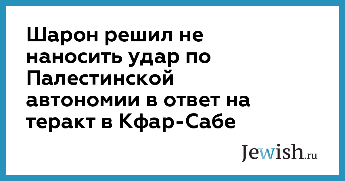Шарон решил не наносить удар по Палестинской автономии в ответ на теракт в Кфар-Сабе