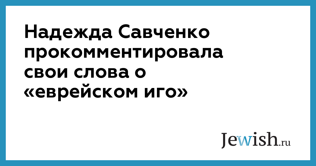 Депутат Верховной Рады Надежда Савченко прокомментировала свои слова о еврейском иго на Украине, произнесенные в ходе телеэфира на NewsOne. Савченко заявила, что после эфира на NewsOne к ней «обратилось много евреев, особенно много было из Одессы, и все говорили, что нынешнюю власть в Украине они своей тоже не признают». «Итак, ищем дальше чье же оно то "иго" в Украине? ... Потому что украинская по крови и по духу власть — это та, что любит украинскую Землю больше всего и заботится об Украинском Народе, независимо от национальности, вероисповедания или цвета кожи», —
