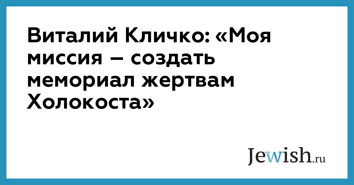 Мэр Киева Виталий Кличко назвал «своей миссией» возведение в Киеве мемориала жертвам Холокоста. «Такие мемориалы есть в Израиле, в Вене, в Берлине, есть в Польше, есть в Вашингтоне, даже в Лос-Анджелесе есть. А в Киеве, где было расстреляно огромное количество людей, такого мемориала нет, –