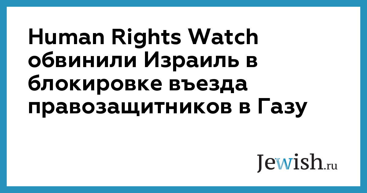 Международная правозащитная организация Human Rights Watch обвинила Израиль в блокировке Израилем въезда и выезда правозащитников в сектор Газа с 2008 года. Об этом говорится в докладе правозащитников, опубликованном на сайте организации. «Несмотря на то, что Израиль делает исключения для запрета на въезд, если цель поездки носит гуманитарный характер, как правило, он не позволяется палестинцам, израильтянам и сотрудникам международных организаций, занимающимся правами человека, въезжать или выезжать из Газы», — приводит