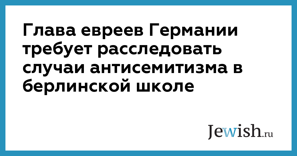Глава Центрального совета евреев Германии Йозеф Шустер потребовал от министерства образования провести расследование случаев антисемитизма и преследования еврейских учеников в одной из школ Берлина, сообщает
