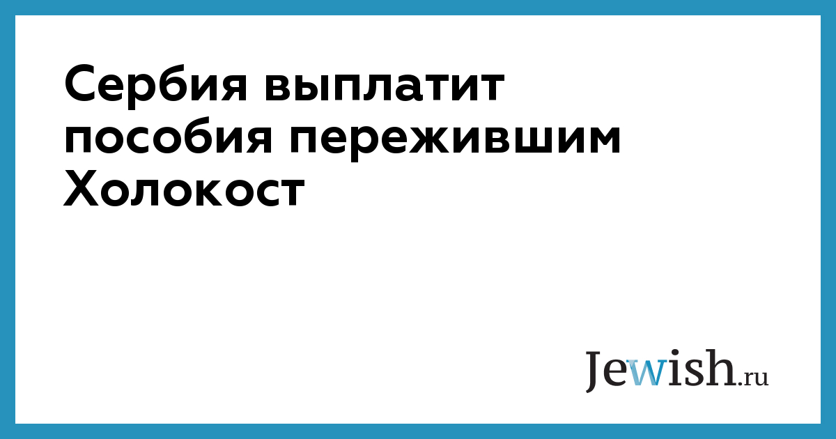 Сербия выплатит пособия пережившим Холокост