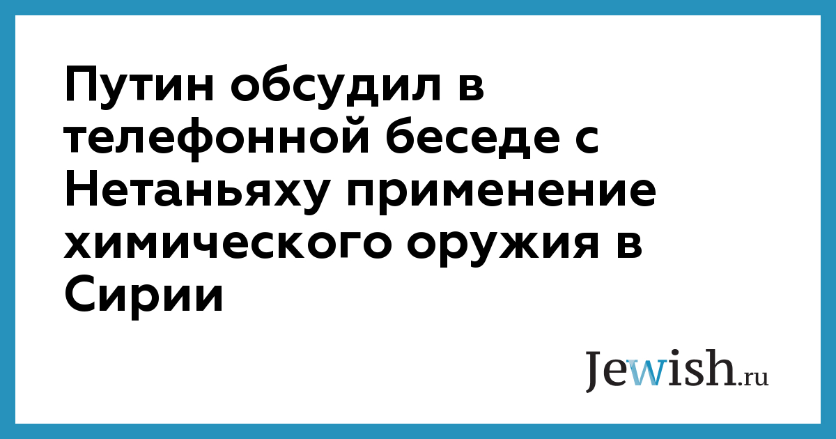 Президент России Владимир Путин в телефонном разговоре с премьер-министром Израиля Биньямином Нетаньяху указал на неприемлемость выдвижения безосновательных обвинений против кого-то бы ни было до проведения тщательного и беспристрастного международного расследования в связи произошедшим 4 апреля в сирийской провинции Идлиб инцидентом с химическим оружием. Об этом сообщила пресс-служба Кремля. Разговор между лидерами двух стран состоялся по инициативе израильской стороны.