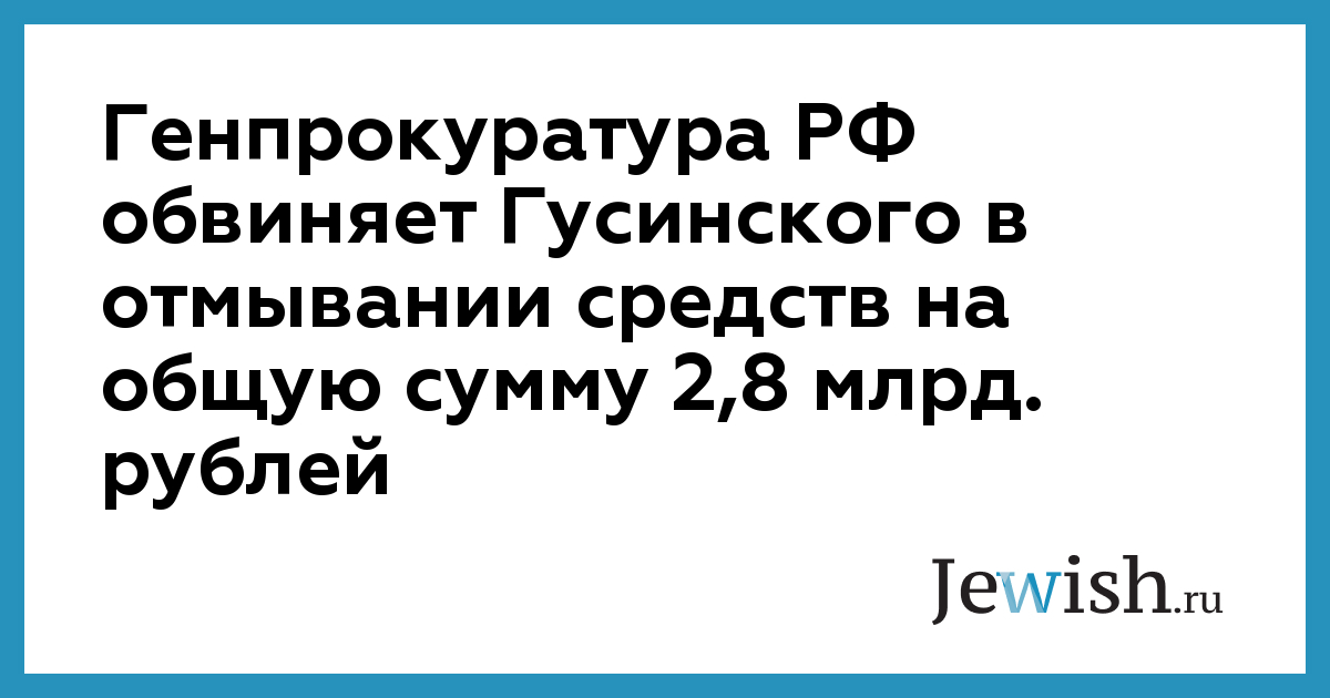 Генпрокуратура РФ обвиняет Гусинского в отмывании средств на общую сумму 2,8 млрд. рублей
