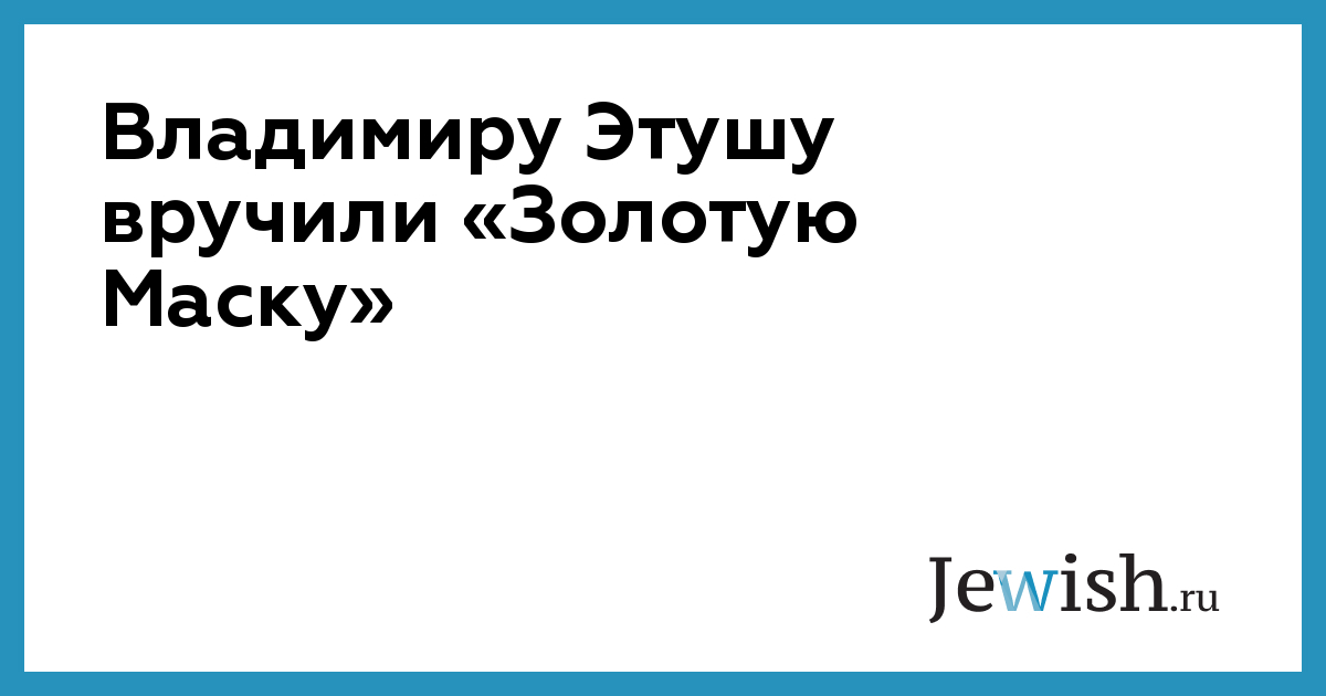 Владимиру Этушу вручили «Золотую Маску»