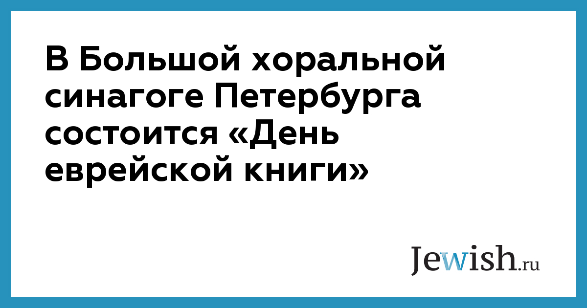 В Большой хоральной синагоге Петербурга состоится «День еврейской книги»