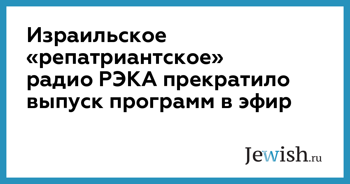 Сегодня утром, 10 мая, был прекращен выпуск программ радио РЭКА. По словам главного редактора радиостанции Александра Дова, до 15 мая – дня начала работы новой корпорации Гостелерадио – в эфир будут выходить лишь выпуски новостей и музыка. Как заявил NEWSru.co.il Дов, у него нет никакой информации о том, что ожидает радио дальше.