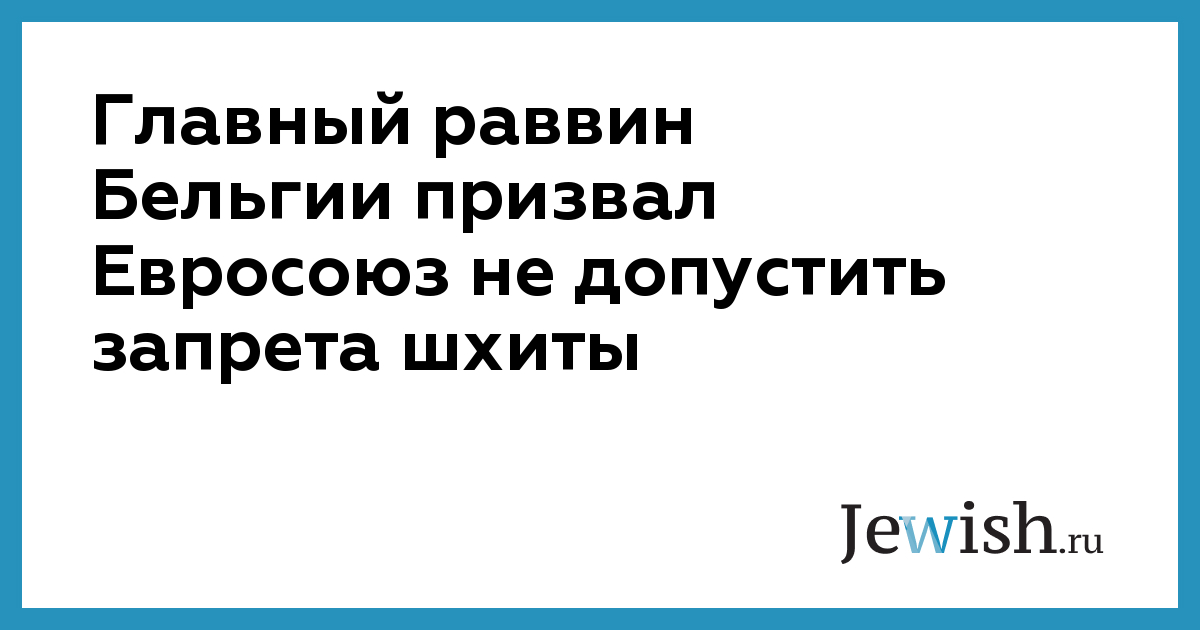 Главный раввин Бельгии призвал Евросоюз не допустить запрета шхиты