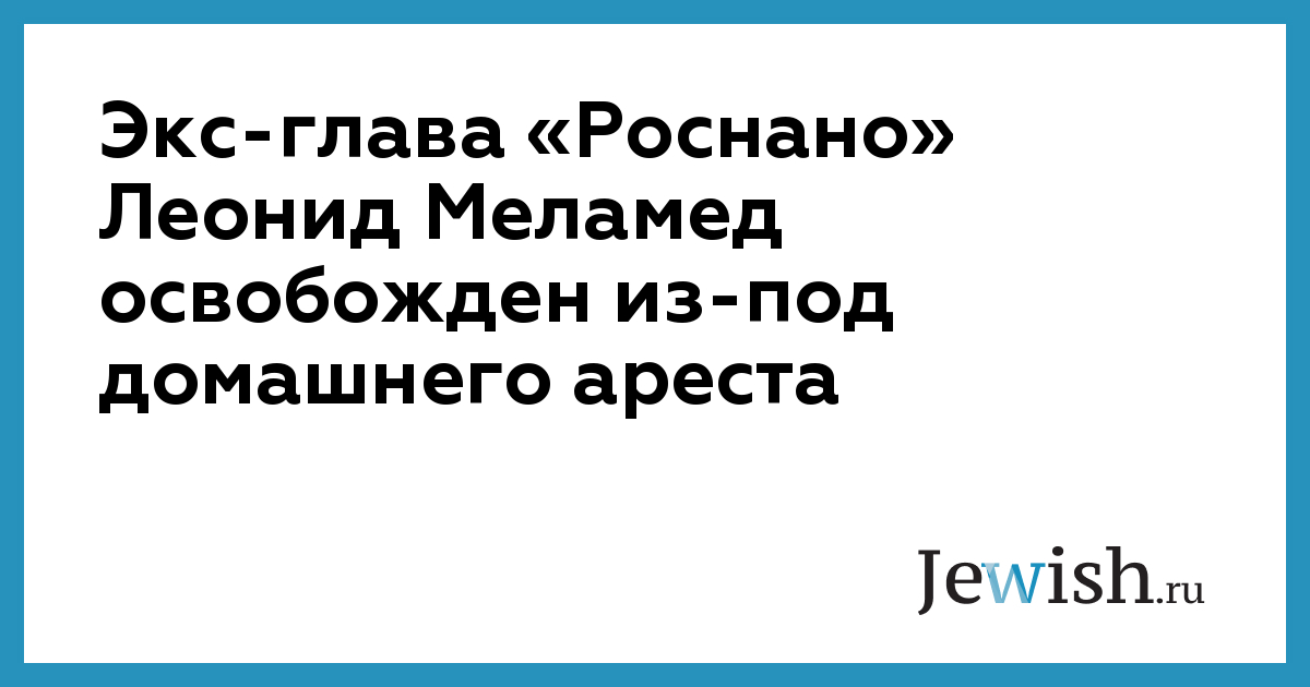 ТАСС, накануне истек срок предельного содержания Меламеда под домашним арестом, в связи с чем он и был освобожден. Экс-глава «Роснано» был задержан в июле 2015 года и с тех пор находился под арестом в своей квартире. Сообщается, что одновременно с Леонидом Меламедом был освобожден находившийся в СИЗО бывший финдиректор «Роснано» Святослав Понуров, который проходит по тому же делу.