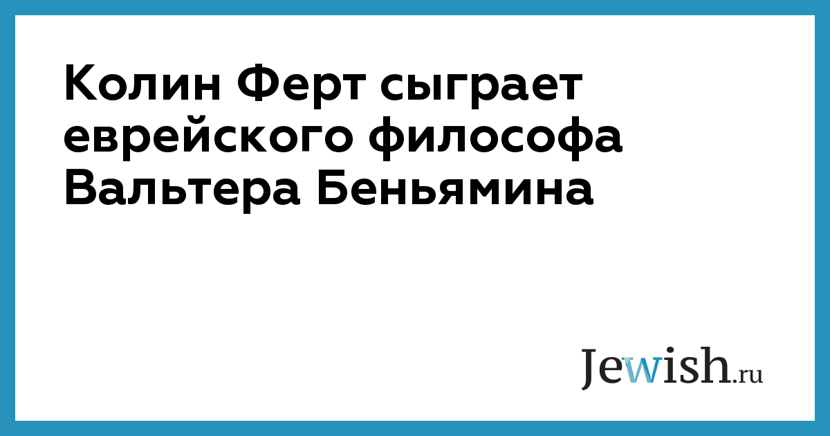 Колин Ферт сыграет еврейского философа Вальтера Беньямина