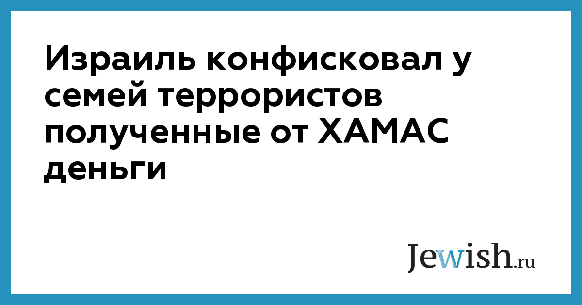 Израиль конфисковал у семей террористов полученные от ХАМАС деньги