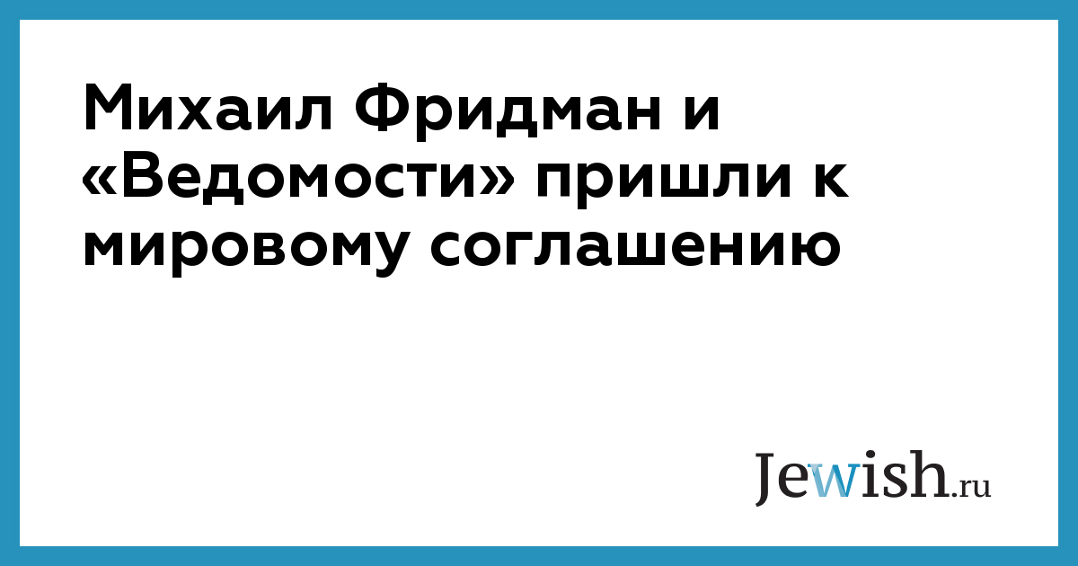 Бизнесмен Михаил Фридман и газета «Ведомости» достигли мирового соглашения по иску о защите чести и достоинства. Об этом сообщает