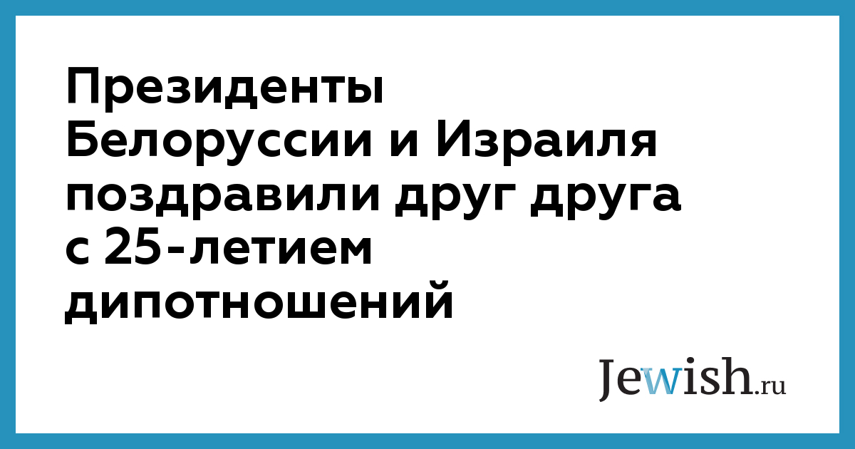 Президент Белоруссии Александр Лукашенко поздравил Президента Израиля Реувена Ривлина с 25-летием установления белорусско-израильских дипломатических отношений, сообщает