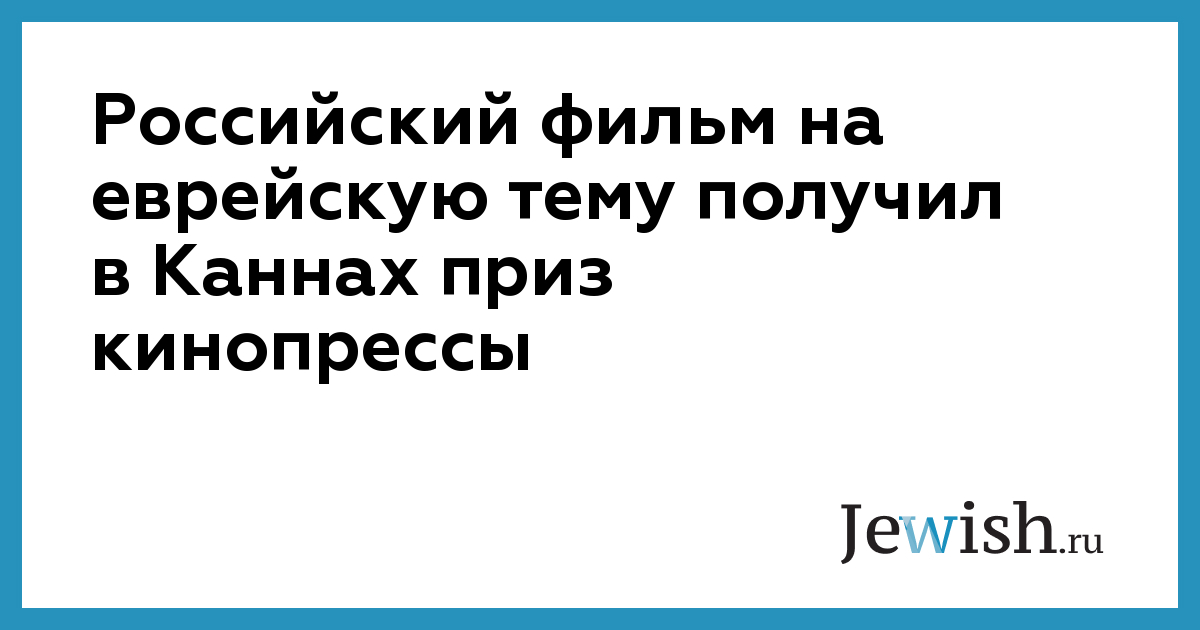 Российский фильм на еврейскую тему получил в Каннах приз кинопрессы