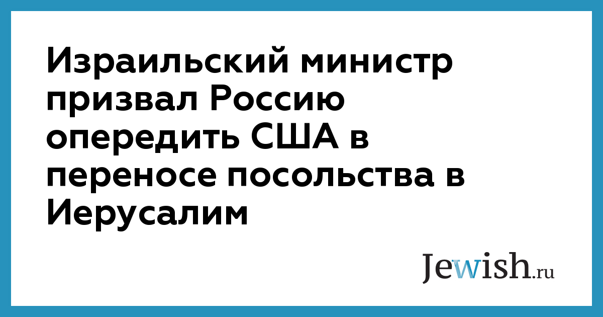 Израильский министр призвал Россию опередить США в переносе посольства в Иерусалим