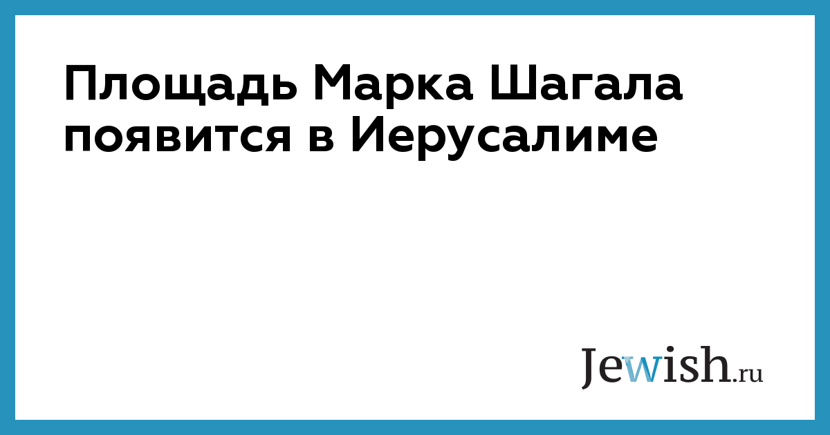 Открытие площади, которая будет носить имя великого российского и французского художника Марка Шагала (1887 – 1985), состоится в среду 28 июня на улице Рав Аган, 10 (напротив Дома Тихо) в Иерусалиме. В церемонии примет участие мэр Иерусалима Нир Баркат, сообщает издание «Детали».