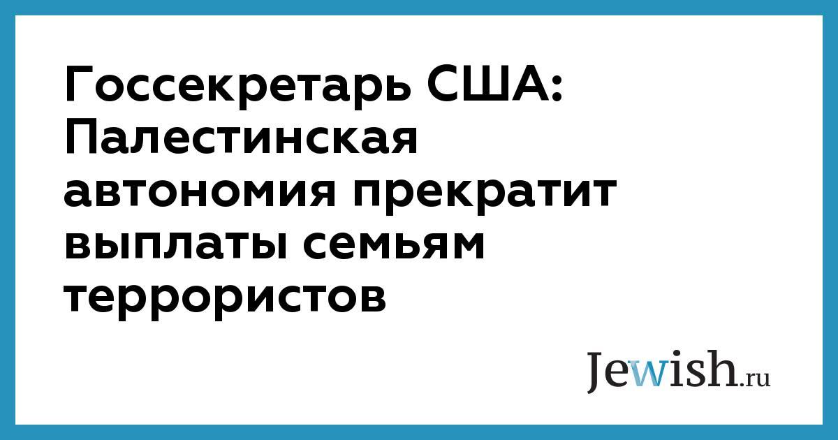 «Мы ясно указали им, что эта ситуация для нас неприемлема, — заявил Тиллерсон на заседании Комитета Сената по международным отношениям. — Они поменяли свою политику и намереваются прекратить выплаты семьям тех, кто совершил убийство или акт насилия по отношению к другим людям».