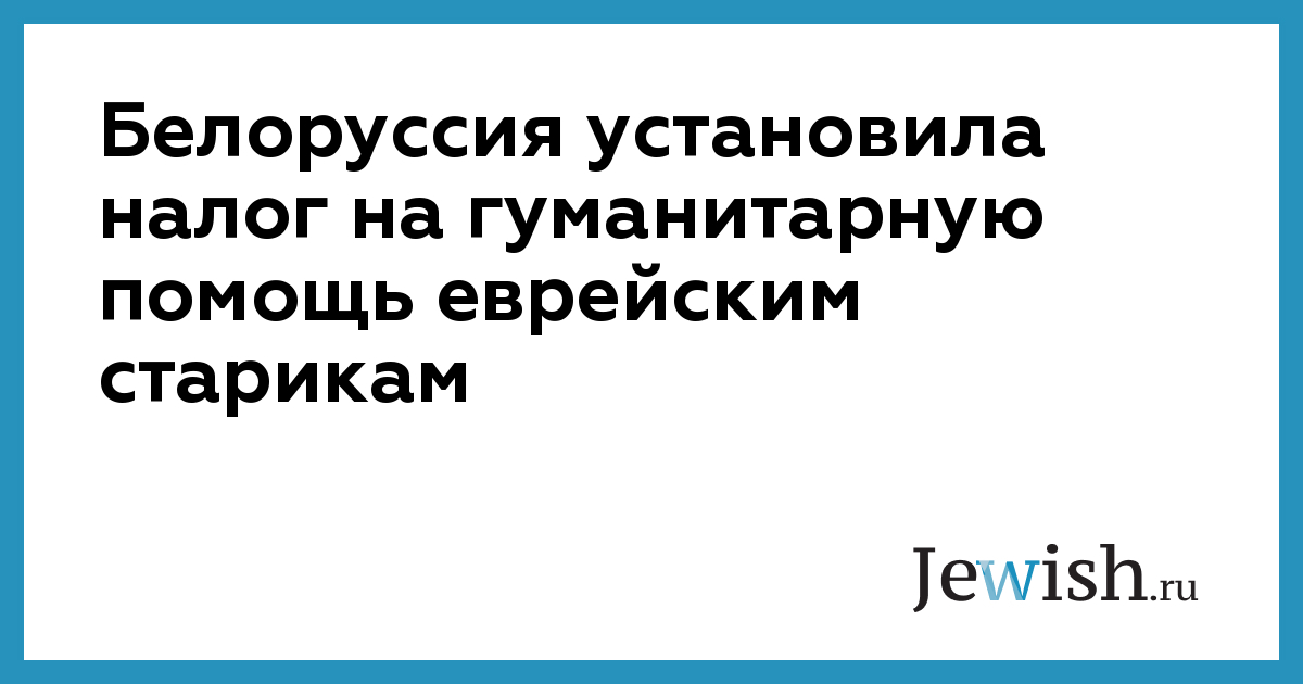 Белоруссия установила налог на гуманитарную помощь еврейским старикам