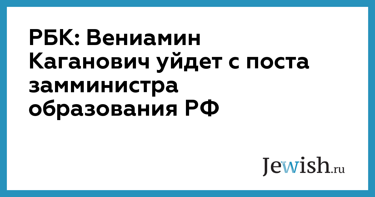 Заместитель министра образования и науки Вениамин Каганов в ближайшее время покинет свой пост, сообщает РБК со ссылкой на два информированных источника. Каганов был назначен замминистра при Дмитрии Ливанове, предшественнике нынешнего главы ведомства Ольги Васильевой. Официальное распоряжение правительства о его увольнении пока не опубликовано. По заявлению одного из источников издания, Каганов уйдет с должности по собственному желанию. Второй собеседник РБК сообщил, что к замминистра накопилось много «претензий финансового характера».